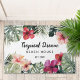 Decorate your home our Watercolor Tropical Floral Botanical Beach House Doormat . Featuring watercolor illustration of hibiscus flowers, monstera, palm leaves, and elegant playful script calligraphy. Personalize it for the unique touch.
