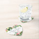 Modern Watercolor Tropical Floral Greenery Wedding Heart Coasters with Pink Flamingo.