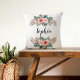 Watercolor Tropical Floral Wreath Custom Text Cushion