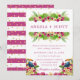 Gorgeous Watercolor Tropical Summer Flowers border frame design with toucans and pink stripes background