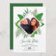 Watercolor painting tropical leaves beach wedding celebration Save the Date cards with your own photo customisable to your event specifics.