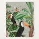 A beautiful watercolor tropical forest design featuring toucan and wild birds. This tropical themed forest design is ideal for anyone who loves tropical scenery, tropical toucans and colourful birds, greenery plants, palm trees and tropical foliage illustrations. Perfect home décor or gift.
