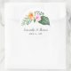A vibrant arrangement of watercolor hibiscus and tropical foliage highlight this colourful favour sticker. The lovely watercolor hibiscus blossoms are in shades of peach and orange with tropical palms and greenery accents. It's a perfect choice for beach weddings, destination weddings, tropical-theme weddings, luaus, parties and more. Personalise with your desired text by editing the sample text in the easy-to-use design template. Aloha!