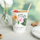 A vibrant arrangement of watercolor hibiscus and tropical foliage highlight this colourful paper cup. The lovely watercolor hibiscus blossoms are in shades of peach and orange with tropical palms and greenery accents. It's a perfect choice for beach weddings, destination weddings, tropical-theme weddings, luaus, parties and more. Personalise with your desired text by editing the sample text in the easy-to-use design template. Aloha!