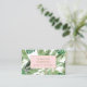 A watercolor pattern of tropical leaves and plants fills the background of this stylish business card. Your name or business name is elegantly displayed in a pink and gold framed box in the foreground. An eye-catching card design perfect for gardeners, landscape designers, interior designers, boutiques, tropical brands and businesses, or for personal use. Original watercolor illustration and design © 1201AM Design Studio | www.1201am.com