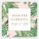 Watercolor Tropical Leaves Pattern on Pink Square Sticker
