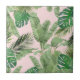 Watercolor Tropical Leaves Pattern on Pink Tile