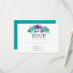 Colourful watercolor tropical leaves and orchids wedding RSVP cards with turquoise blue watercolor wash reverse.