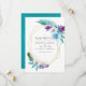 Colourful watercolor tropical leaves and orchids wedding save the date with gold geometric frame and turquoise blue watercolor wash reverse.