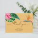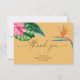 This colourful tropical floral and tropical colour background bridal shower invitation. Design features an watercolor elegant bouquet of classic beach watercolor greenery and flowers, including blush pink hibiscus, orange and blue bird of paradise, green greenery and dark green palm leaf.