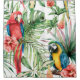 Watercolor tropical seamless pattern with parrots and hibiscus. Hand painted birds, flowers and jungle palm leaves. Floral illustration isolated on white background