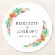 Colourful tropical flowers and greenery summer beach wedding coasters customisable to your event specifics.