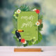 An acrylic wedding 'Cards and Gifts' sign featuring a spring green frame and a border with a bold toucan sitting among watercolor hibiscus blooms and palm leaves. This tropical wedding sign design is perfect for summer, beach and tropical weddings, birthdays and other special events. Search ID577 to see matching products.