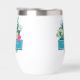 Colourful wedding thermal wine glass design featuring a horizontal teal frame bordered by watercolor hibiscus blooms, a bold toucan and lush palm leaves. Add the bride and groom's names and wedding date using the provided template. This tropical design is perfect for summer garden, beach and tropical weddings, birthdays and other special events. Search ID577 to see matching products.