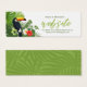 Colorful wedding website insert cards featuring a corner ornament of a bold toucan sitting among watercolor hibiscus blooms and palm leaves. The white background is optional and can be changed if preferred. Reverse has a repeating, palm leaf pattern in shades of spring green.The card has a template to edit your website address and the bride and groom's names. Search ID577 to see matching products.