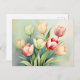 Watercolor Tulip Garden On Sage Green Postcard