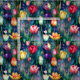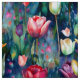Cut flowers only last a few days, but a beautiful watercolor painting of colourful tulips will last much longer. This field of multi-colour tulips in full bloom has a dark blue background.