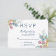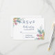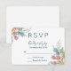A RSVP card with watercolor tulips in pink and blue with leaves and decorative sprigs which make a cute spring-like bouquet.