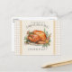 Gather your loved ones with this charming watercolor Friendsgiving postcard invitation. The design features a beautifully roasted turkey on a platter surrounded by herbs and berries, framed with a soft beige gingham border on each side. A muted cream-yellow watercolor wash sets the background, while the elegant script reads, “Please join us for a Friendsgiving Dinner Party.” The back includes customisable text fields for your event details, making it easy to personalise for your gathering. Perfect for hosting a warm and festive autumn celebration.