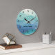 Watercolor Turquoise Navy Blue Ombre Waves Numbers Large Clock