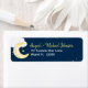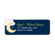 Theme Parties' cute Twinkle Twinkle Little Star baby shower return address labels feature watercolor accents of a blue cloud, yellow crescent moon, and matching yellow stars. The design is set on a navy blue background. It's the perfect design to announce "It's a Boy"! #SnailMail #ReturnAddress #BabyShower #ItsABoy