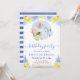 Framed by airy blue and yellow florals with subtle gold speckles, the artwork blends coastal elegance with childlike charm. The soothing palette of ocean blues, coral tones, and fresh greenery gives the design a light, breezy seaside feel. Flowing script typography enhances the dreamy aesthetic, making this design perfect for a magical ocean-themed birthday celebration full of wonder and aquatic adventure.