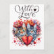 Watercolor Valentines cats with love Holiday Postcard