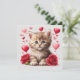 Watercolor Valentine's Day Kitten with Roses Holiday Card