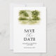 Announce your wedding in refined style with this elegant venue save the date designed with hand painted artwork inspired by Gran Paraiso Gardens in soft moss green tones. Designed by Florida watercolor artist Victoria Grigaliunas of Do Tell A Belle, this artistic design captures the romance and architectural beauty of your venue in a way that feels personal, sophisticated, and unforgettable.