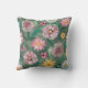 watercolor vibrant green pink rose flowers cushion