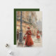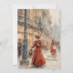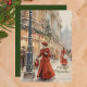 Step Back in Time to a Victorian Christmas! This exquisite holiday card features a charming watercolor illustration of a festive street scene, complete with elegantly dressed figures strolling past shops adorned with garlands and glowing lights, all under a gentle snowfall. Customisable classic "Merry Christmas" on front adds a timeless touch. A solid green background and a customisable text on reverse where you can add your family name or a heartfelt message to create a truly unique holiday greeting.