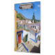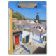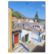 Watercolor Mediterranean village with white houses and red tiles with street view in Portugal