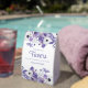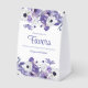 This elegant watercolor table tent features a delicate arrangement of soft violet flowers, perfect for adding a touch of sophistication and romance to any wedding reception or special event. The paper construction ensures easy handling and disposal, making it a practical and stylish choice for your décor.