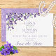 Invite your guests to a celebration bathed in ethereal elegance. Our watercolor wedding save the date card features a cluster of delicate violets, hand-painted in the softest shade of violet, adorning the top corner. A touch of ethereal magic is added with a sprinkling of faux gold dust shimmering amongst the blooms. The pure white background allows your text, also a soft violet, to stand out beautifully. This enchanting suite creates a timeless and romantic atmosphere, perfectly reflecting the beginning of your forever. Created by Simply Farmhouse Press.