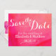 Beautiful watercolor wash art and flower wedding save the date invitation in grey, white and pink red. Edit this save the date wedding card with your own words. Unique design and original watercolor painting by Sarah Trett.
