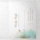 This tri-fold invitation features watercolor brush stroke in deep navy blue colours with gold accents imitating waves on the beach which makes it a perfect choice for a summer or beach wedding. It is minimalistic and elegant in layout and font choices, also very easy to customise. Other items from this collection complement it very well so do check out the whole collection "Watercolor Waves" in our store.
