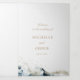 This tri-fold invitation features watercolor brush stroke in deep navy blue colours with gold accents imitating waves on the beach which makes it a perfect choice for a summer or beach wedding. It is minimalistic and elegant in layout and font choices, also very easy to customise. Other items from this collection complement it very well so do check out the whole collection "Watercolor Waves" in our store.
