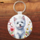 Spring vibes keychain featuring a cute watercolor Westie on a beautiful spring day. Customisable.