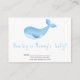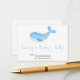 A little one on the way with this under the sea themed baby shower invitation, featuring baby whale in soft blue watercolors.