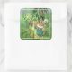 Check out this hand-painted illustration, beautifully crafted on a watercolor background in a green meadow. The leaves of a tree overshadow a cute bunny holding a chicken with carrots and flowers.