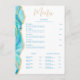 Another elegant restaurant menu by Blue Sands Studio. This modern menu features an aqua blue watercolour design with faux gold glitter details. Reminiscent of agate stone. Classic serif fonts are combined with sweeping calligraphy. Easily editable template to insert your menu sections and items. Laid out into Entrees, Sides, Soup & Salad, and Dessert. If you need help or advice, please send me a Zazzle message.