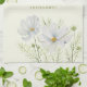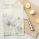 Watercolor White Cosmos Flowers Botanical Painting Tea Towel