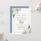 Watercolor White Floral Dusty Blue Gold Wedding Invitation