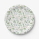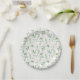 Watercolor White Flowers and Greenery Leaves Paper Plate
