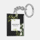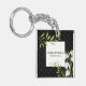 Watercolor White Snowdrops and Laurel Damask Key Ring