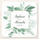 Watercolor Wild Leaves Hunter Green Wedding Square Paper Coaster