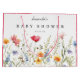 This design features a row of delicate watercolor wildflowers. Perfect for elegant outdoor baby showers.