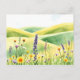 Watercolor Wildflowers and Rolling Meadow Hills Postcard