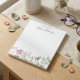 Elevate your desk with this gorgeous custom notepad design featuring an exquisite hand-painted watercolor border of lush botanicals and delicate florals. The bottom edge showcases soft green leaves, pink hydrangeas, and tiny red berries, creating a natural, peaceful frame. Above the ample writing space, your name is elegantly scripted in a light, flowing font, making this a chic and personalized stationery must-have.