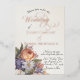 This romantic invitation features an earthy background embellished with delicate watercolor florals, spilling from the corner like a gentle blushing embrace. "Wedding" and the bride & groom's names in foil. The back has a placeholder for the couple's names within scroll dividers. The invitation breathes a sense of hope and the promise of a beautiful future and a celebration of love that is now ready to be declared to the world. Designed to coordinate with the Wildflower Wedding Collection. To change details, click «Personalize». To move the text or change the text size, font, or color click «Click to customize further» .